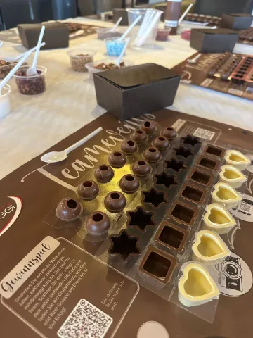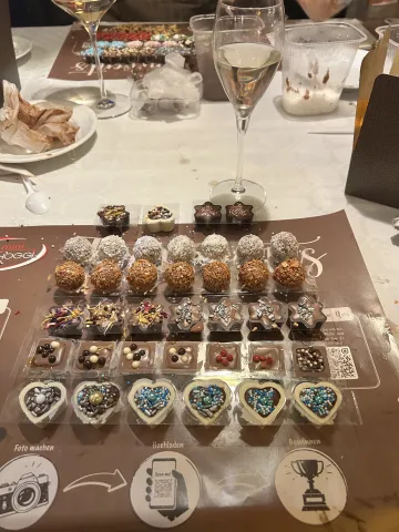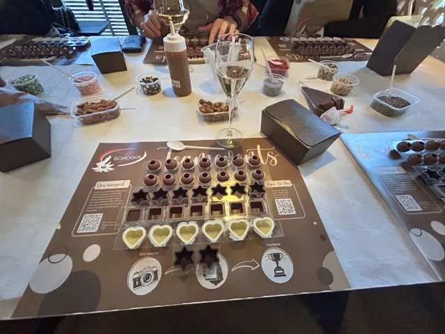 Wir waren sofort im Schoggi-Fieber: Füllen, klopfen, dekorieren. Manche Pralinés sahen aus wie kleine Kunstwerke, andere eher wie kreative Experimente. Und natürlich wurde zwischendurch probiert: rein zur Qualitätskontrolle, versteht sich.